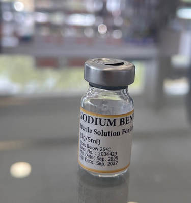 ویال سدیم بنزوات جهت بیماران بستری در بیمارستان موجود در داروخانه دکتر علی شاکری آدرس: مشهد حاشیه میدان تقی آباد نبش ملک الشعرای بهار تلفن: 05138541111